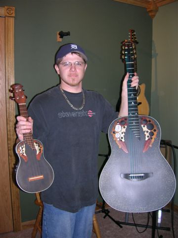 The "Bad Dog" in the picture is the EA68 I just nailed on the bay with a bottom feeder bid of $500.. the wife almost killed me when I bought this one... some dings and scratches, but all in all pretty nice, and came with ohsc, JB at the mothership sent me a new knob/faceplate decal for the preamp, and it has a cracked saddle on the G string so will need another opp... but plays really nice.