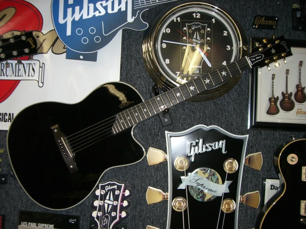 I would have liked to see them do the fret markers in little inlaid abalone STARS! That way the neck would match the bling of the binding inlaid bling. Maybe some day I'll have a custom done that way (: |
