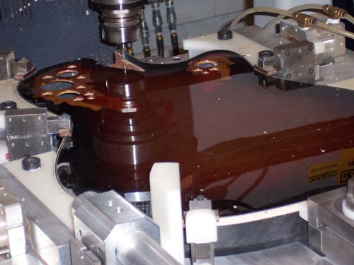 Here is how they cut the top to insert the bridge. The picture shows cutting to insert the neck. I think Paul Wag or trboy got pics of the actual bridge cut.
