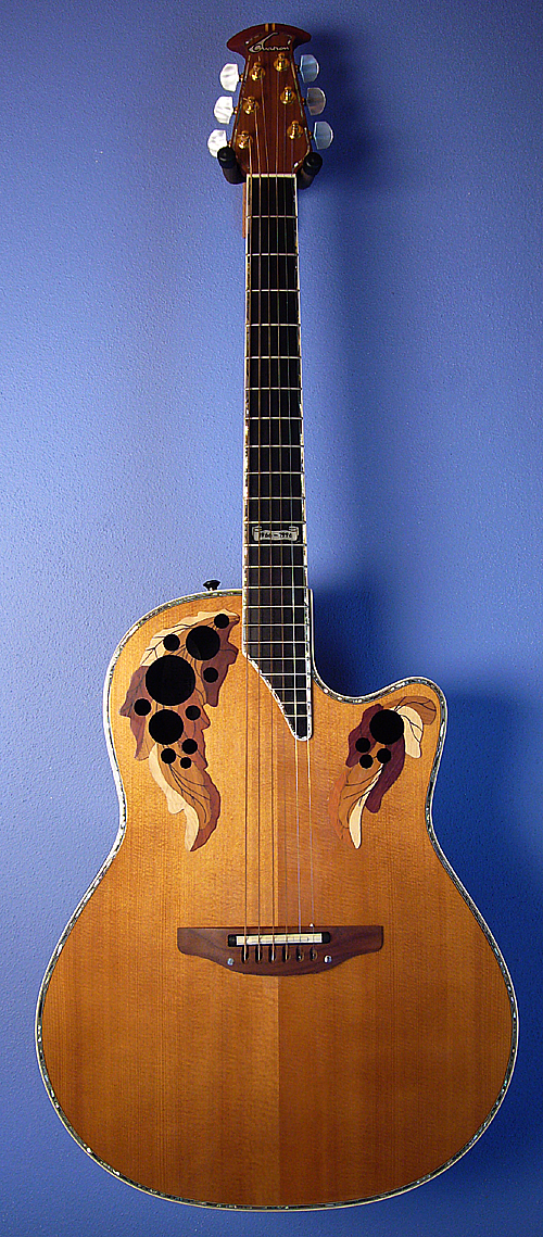 Joined: March 2002 Posts: 15680 Location: SoCal | Ok. Time to be serious. These are one of the best wood top Ovations ever built. Different appointments, but the same basic guitar as the 87C. Toby had both and couldn't tell them apart, sound-wise. Somebody needs to buy this instrument..... | ||