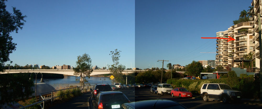 ![]() Joined: August 2005 Posts: 3736 Location: Sunshine State, Australia | Originally posted by The Wabbit Formerly Known As Waskel: You'll have to ask James, Wabbit. My house is about 60 miles North of the one arrowed. ...and Muzz, how come the air's so much dirtier around your apartment? I just did a quick stitch, crop and resize to get it up asap. No time for colour/contrast/hue adjustments. Originally posted by lanaki: Hint, hint.... :rolleyes:now how cool is that? good on both of ya's! i reckon tim tams don't go good with beer though. man, those things were scrumptious! | ||