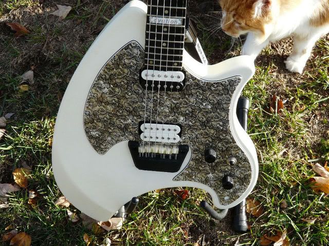 Joined: September 2006 Posts: 10777 Location: Keepin' It Weird in Portland, OR | I didn't mean to be rude to the poor guy... And I am not saying that a vintage BW ain't worth a Grand. by Old Man Arthur: But the listing gives you a history of BW's and Deacons and LTD's and Toroidal p'ups and mini-humbuckers... This guy has a LOT of optimism. But none of that matters to this one which has who-knows-what kind of p'ups that are not Ovation. And ain't this missing some switches? (nice kitty) And while I am posting pics... I looks pretty, but... [the little "Ovation" plaque on the 18th fret is interesting] | ||