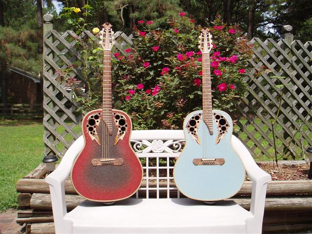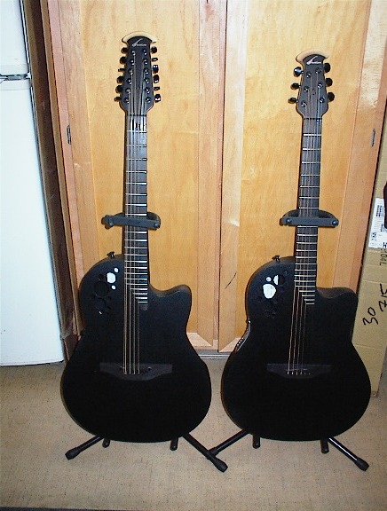 | Joined: April 2008 Posts: 498 | Twins? sort of I guess... but there's 40 years between them, but they're both deep bowl balladeers... at least at the time 68/69 the 1115 was a Balladeer 12 and not yet a Pacemaker if I'm correct... so a 68/69 shiny K1115-4 and it's grandson a brand new 2008 2771LX-4CB The "Bad Dog" in the picture is the EA68 I just nailed on the bay with a bottom feeder bid of $500.. the wife almost killed me when I bought this one... some dings and scratches, but all in all pretty nice, and came with ohsc, JB at the mothership sent me a new knob/faceplate decal for the preamp, and it has a cracked saddle on the G string so will need another opp... but plays really nice. Glenn | ||