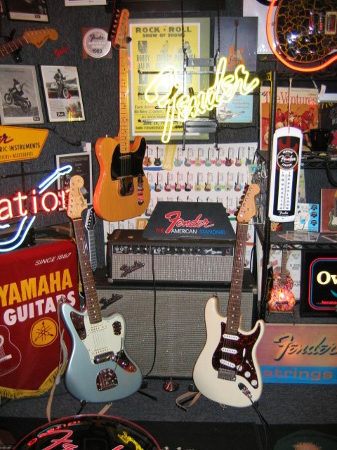 Joined: March 2005 Posts: 5567 Location: Blue Ridge Mountains | Nice pic Brad...better than some of the MI stores I worked at back in the day...I have loved the tone of a Strat (both of mine have non scalloped Maple boards) through a Twin for many years: I used a pair of 60's Twins (one with a JBL 15) years ago with the bands...the clean bell like tones are accessible at low volume and the addition of the reverb and tremelo allow many cool retro sounds; just add a cool sounding distortion pedal or Fuzz and Whoa Baby...as for cranking the Twin to 9 for the congregations, well I'd be thankful the flight case has casters as I would be sent riding it down the road I'm afraid...lol...if things get bad enough, I'll keep that thought in mind...As Al says, "if it's too loud, you're too old"!!! One nice thing about the Twin is that it sounds great at any volume level... | ||