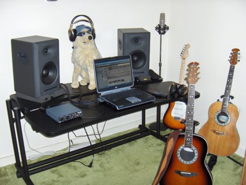 Joined: February 2008 Posts: 247 Location: Delaware | Finally got a workstation to set my recording gear up on. The dining room table just wasn't cutting it ! Wating on some acoustical room treatment, I might try some of the auralex maxwall vocal booth stand mounted panels so I can move them around for recording then for mixing down. Anyone have any experience with the auralex maxwall system ? ![]() | ||