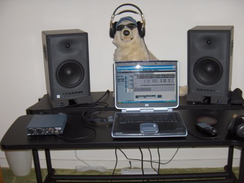 Joined: February 2008 Posts: 247 Location: Delaware | Originally posted by cliff: Cliff, the dog sits still because he is awestruck listining to tracks from your website in his headphones !!!!". . How do you keep your dog from knocking everything over? . ." sheetrock screws thru the paws. | ||