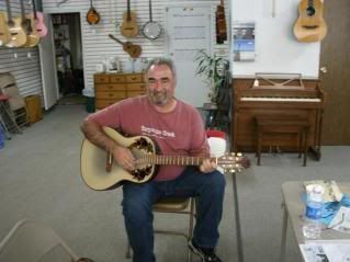 Joined: March 2008 Posts: 2683 Location: Hot Springs, S.D. | Dale Lutes is not able to attend the First Annual Rocky Racoon Memorial Gathering next week, but he and his other half were in the area today so they stopped in. VERY nice people! And I think Dale enjoyed playing my Adamas. I hope this pic I tried to post comes through, but if not, check my ning page. He will be posting a couple more next time he's near a computer. | ||