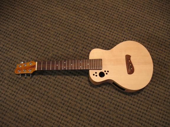 Here's one I am a little excited about. I grabbed the remnants of a smashed Tacoma Paoose. This is an "A" scale guitar that plays loike a guitar and sounds more like a Mandolin.
