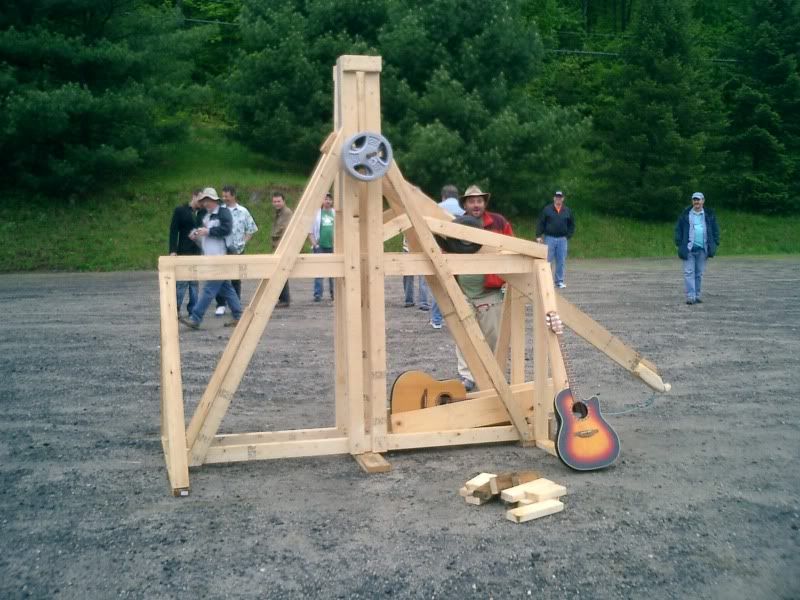 I watched that trebuchet in action from a distance, it was silly [yet so much fun!] to see them guitars fly up in the air and crash with a thud. I was surprised that these guitars were still intact, especially the second one, after what they've been through.