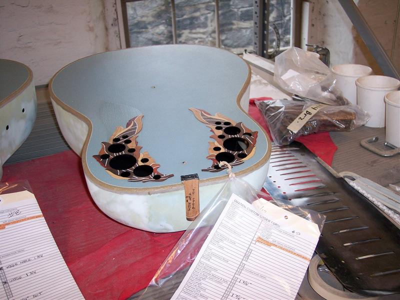 Joined: December 2003 Posts: 1889 Location: Central Massachusetts | Every OFC Adamas I saw at the factory or the hotel lobby had the burst. There were some unfinished plain blue bodies on the tour. | ||