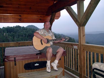 Just back from the best vacation ever. Four nights on a mountainside cabin deck playing my guitar. Just as we were packing to leave I heard someone playing on a nearby cabin deck. From a distance I could see no pickguard and sure enough, he had an Ovation. We never got a chance to play. He had just got there and we were leaving.