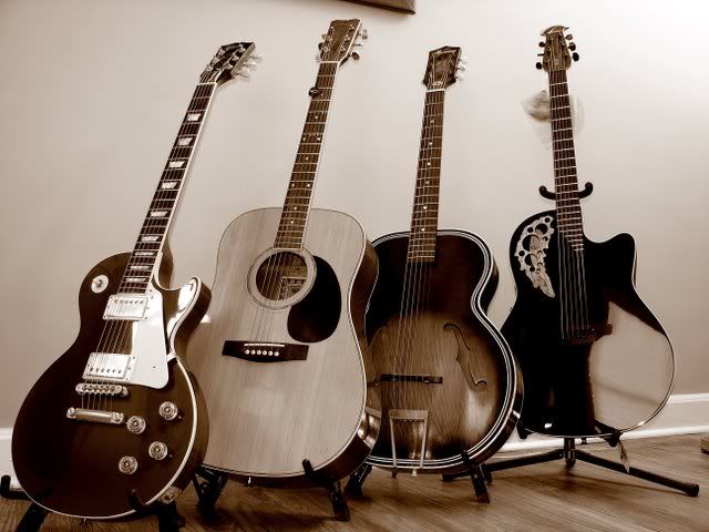 Joined: August 2008 Posts: 14 Location: Central New Jersey | Thank you guys for the nice welcome. I'm pretty sure that I will enjoy playing this one for awhile. Wifey was going to add a 12 string but we decided that I should, OK, she decided that I should wait until I find the perfect one and will get an Acoustic Amp instead. Since I have a habit of saying, "honey you were right!" I'm going to actually wait for the right one. :) Cliff - I'm not too far from Monmouth Beach. Stonebobbo - I have 5 guitars now, one is a PRS which I intend to give to my brother in law this weekend, he doesn't know it yet. I have an Ibanez RG 550DX which I just gave my son so Wifey thinks I'm cleaning things up but what she doesn't know, I'm actually making room for more O's LOL! | ||