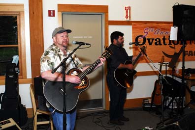 Joined: September 2003 Posts: 9301 Location: south east Michigan | Odds & Ends... Thanks to Cliff for giving me a chance to test drive that awesome Adamas longneck. Thanks to ttenn for the video work. Thanks to Dave for the French Fry gig. Sorry to Amy for disrupting her song at the ski Lodge. Thanks to Paul T. for the private G-band lesson. Thanks Karen (Jewel's Mom) for letting me play Gertrude (a '71 Balladeer). Folks.. this was one special instrument. For one.. it plays like butter. The action at the first fret is about the same at 10th fret. A true testiment to Ovation quality. Another reason that makes this guitar special is it's personal history. Karen shared details with me that I won't post here but lets just say that it made me want to play my 36 year old Balladeer and think about all the things that it has seen me through. Thanks Phil... just for being Phil. Thanks Kim.. for playing "Little Black Egg". At least you & I will keep that history alive. Paul Moody... thanks for the encouraging words on our ski lodge set. Goober.... what a guy. He can boil it down & make more sense with 8 words than I can make with 80. I'm glad he plans on being there next year. Jerome & Tom... I was bummed when your set at the ski lodge got bumped. (That's a whole other story). I'm glad you gave us a taste of your talent later in the lobby. These guys are good. To get an idea how his tour effected Jerome & Tom, think how Charlie looked & felt as he toured Willy Wonka's Chocolate Factory. Thanks to Waskel for being the best back seat driver I have ever had the pleasure to transport. Brad... it's raining... Brad.. it's not raining anymore.. Brad... Phils getting away from you.. Brad.. Are we there yet.. Brad.. Brad.. Brad Ed Stonge... what have you done to me??? He fired up the Mesa Boogie amp... set it up for maximum dirt, sustain, growl & power. Then he handed me a Hamer Monaco. Man, I gotta tell ya.. I ROCKED, DUDE!!! Power notes that rang out forever & then morphed into the most fantastic feedback I have every played with. Then a little lean on that Bigsby made that thing moan like a wounded grizzly bear. I gotta say that I might be a short timer here at the OFC. If I don't show up for a couple weeks, look for me over at the Hamer FanClub. My name over there will be... ROCK GOD!! Lastly.. Thanks to BrianT for being the best partner for an acoustic duo I could ever hope to find. | ||