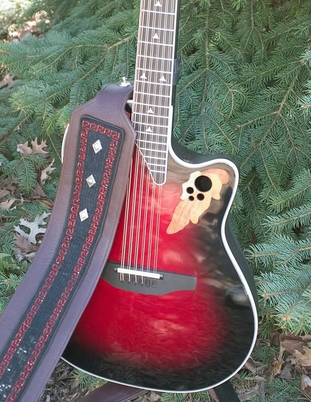 Joined: March 2007 Posts: 302 Location: Buffalo,NY | Here are the pic's of my new(to me) Standard Balladeer 1771LX a number of you have asked for: Even though shown on my 12 String(1858LX) , here is the strap that I will use for the Balladeer as well. The leather is a very nice maroon color(or is that mauve ?). Regards, Tom | ||