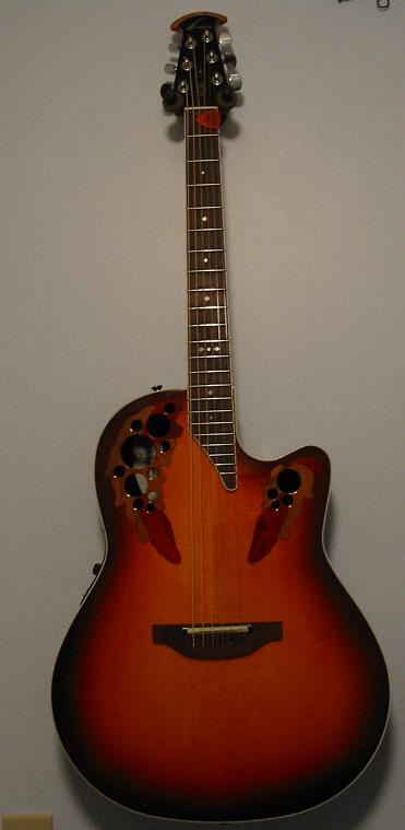 Joined: December 2004 Posts: 1116 Location: Keller, TX | No, that looks about the same as mine in low lighting. This is Black Cherry Burst from Ovations' website. It is MUCH darker than mine. ![]() | ||