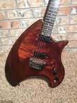 Mahogany neck and body, Dragon Fire (Oregon) mini humbuckers, 5 way switch and a Woody pickguard. January 2019